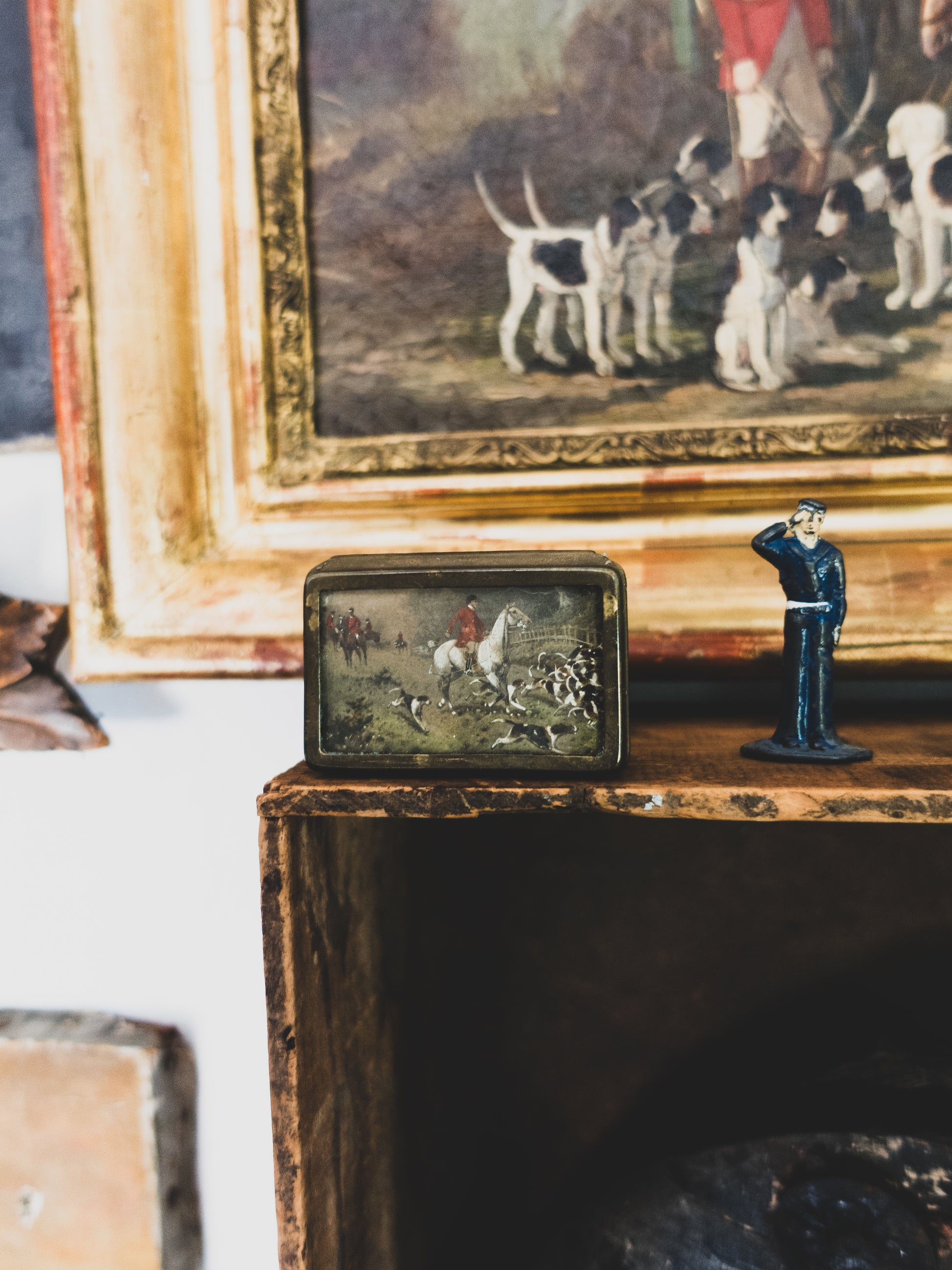 Hand-Painted Hunting Scene Match Safe - c. 1900